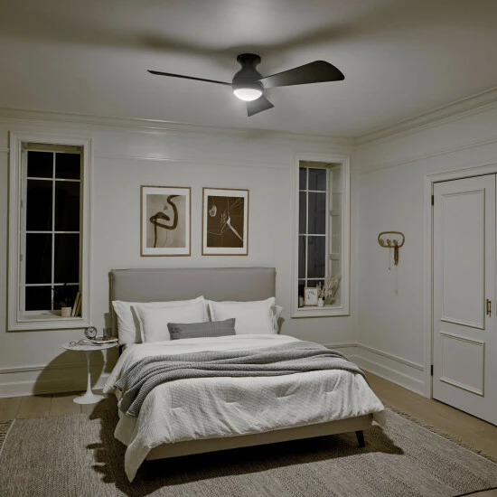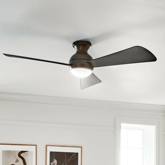 This 54-inch, 3 blade LED ceiling fan from the Sola collection features an olde bronze finish that will subtly highlight the existing decor in your home. This attractive fan will complement many contemporary and modern decors. This olde bronze ceiling fan from the Sola collection, which can be used in wet locations, features integrated LED lighting and flush mount installation. The globe inspired motor housing shape brings delightful style to any space. A metal fixture cap is included for non light use installations. The 3 blades are pitched 14 degrees and come with a brown finish. The 172MM X 20MM Motor will provide the quiet power you need. This fan comes complete with a 3 Speed Wall Control Full Function System. Dimensions: 11 inches high x 54 inch diameter. Turn on our fixtures, and watch your room transform even more. From lighting to ceiling fans Kichler collections are built around our simple philosophy of bringing you the effect you want for your home or business. Our collections coordinate from room-to-room, or let you mix and match from wall-to-ceiling. And each fixture is designed to deliver a stunning quality of light that makes your space more beautiful and more livable. As one of the largest, privately held residential lighting fixture companies in North America, we’re constantly working to create innovative and on-trend decorative products as well as knowledgeable support. Since 1938, we’ve been creating products that are not only well designed, but also practical. We invest millions of dollars each year in design, technology and testing to assure that we’re offering distributors, designers, installers and homeowners not only innovative technologies – but also fixtures that perform efficiently, install intuitively and deliver a premium source of light. This philosophy holds true for everything we create – from our wide variety of decorative fixtures to our award-winning landscape lighting to our ceiling fans.
