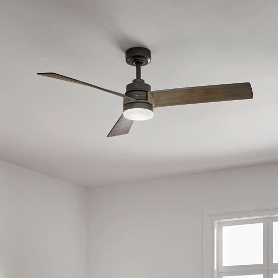 This Spyn collection 52-inch, 3 blade LED ceiling fan features your choice of an Anvil Iron, Brushed Nickel, or White finish that will subtly highlight the existing decor in your home. These attractive fans will complement many transitional decors. Squared edges and angles give these Spyn LED ceiling fans their contemporary style and industrial look. Sized for bedrooms or smaller spaces, the integrated LED light delivers terrific room-filling illumination.