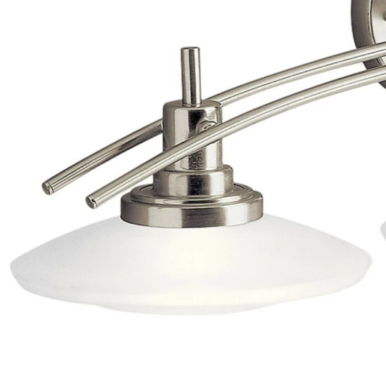 This Structures collection 3-light halogen bath/vanity fixture features a brushed nickel finish that will complement many contemporary and modern decors. The satin etched white glass shades soften the light to create a warm ambiance for any space. Structures lighting employs universal shape to create modern, aesthetically pleasing lighting capable of unmatched versatility, forming a unique and eclectic style all its own. Along with our brushed nickel finish and satin-etched glass, it gives a timeless, clean feel capable of matching any decor. The Structures collection is so versatile that it can even be used in the bathroom. Dimensions: 8.75 inches high x 30 inches wide x 10.5 inches deep. Turn on our fixtures, and watch your room transform even more. From lighting to ceiling fans Kichler collections are built around our simple philosophy of bringing you the effect you want for your home or business. Our collections coordinate from room-to-room, or let you mix and match from wall-to-ceiling. And each fixture is designed to deliver a stunning quality of light that makes your space more beautiful and more livable. As one of the largest, privately held residential lighting fixture companies in North America, we’re constantly working to create innovative and on-trend decorative products as well as knowledgeable support. Since 1938, we’ve been creating products that are not only well designed, but also practical. We invest millions of dollars each year in design, technology and testing to assure that we’re offering distributors, designers, installers and homeowners not only innovative technologies – but also fixtures that perform efficiently, install intuitively and deliver a premium source of light. This philosophy holds true for everything we create – from our wide variety of decorative fixtures to our award-winning landscape lighting to our ceiling fans.