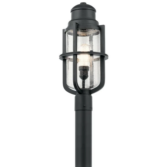 This Suri collection 1-light outdoor post mount features a textured black finish that will complement many transitional decors. The clean lines of the nautical inspired frame add interest while the clear seeded glass allows the light to bounce giving your outdoor decor a whole new look. Enjoy a rich textured black finish that never fades. Harsh sunrays, salt water spray and more of Mother Nature’s worst are no match for the Climates finish on this Suri outdoor post light. Constructed using a composite material with UV protectant, Suri’s nautical-inspired look stays beautiful for years and is backed by a 6-year warranty. Post is not included. Dimensions: 20 inches high x 9 inch diameter.