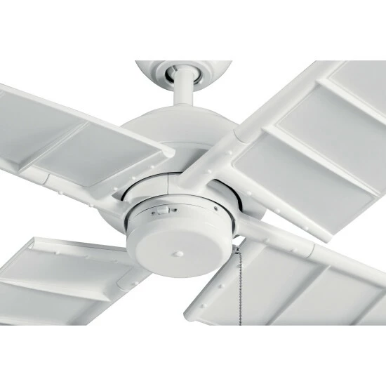 This Surrey collection 60-inch, 4 blade ceiling fan features your choice of a Matte White, Satin Black, or Satin Natural Bronze finish that will subtly highlight the existing decor in your home. These attractive fans will complement many transitional decors. This Surrey Climates(TM) ceiling fans are reminiscent of summer bike rides along the boardwalk and a cool nautical breeze: Surrey’s slatted blades and laid-back style bring a beachy feel to rooms inside or out. Crafted from Kichler’s CLIMATES(TM) materials, the fan finish is designed to withstand harsh outdoor elements for long-lasting beauty. Add an optional Kichler light kit for enhanced functionality.