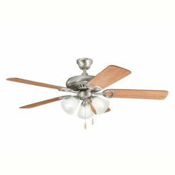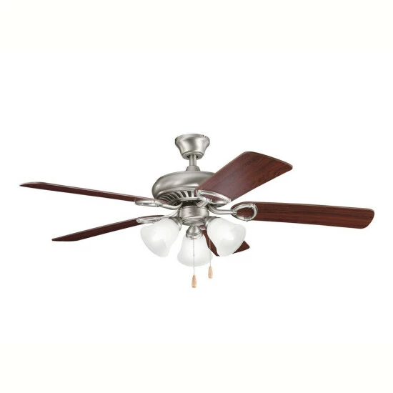 This 52-inch, 5 blade ceiling fan from the Sutter Place Premier collection features an oil brushed bronze finish that will subtly highlight the existing decor in your home. This attractive fan will complement many traditional decors. This tasteful, Sutter Place Premier fan will add an elegant touch to any space in your home. It features a classic, oil brushed bronze finish and striking umber alabaster glass. The 5 blades are pitched 12 degrees and are reversible with your choice of a walnut or medium cherry finish. The 153mm x 15mm Motor will provide the quiet power you need. This fan comes complete with a pull chain (3 speeds forward and reverse). Dimensions: 17.75 inches high x 52 inch diameter. Turn on our fixtures, and watch your room transform even more. From lighting to ceiling fans Kichler collections are built around our simple philosophy of bringing you the effect you want for your home or business. Our collections coordinate from room-to-room, or let you mix and match from wall-to-ceiling. And each fixture is designed to deliver a stunning quality of light that makes your space more beautiful and more livable. As one of the largest, privately held residential lighting fixture companies in North America, we’re constantly working to create innovative and on-trend decorative products as well as knowledgeable support. Since 1938, we’ve been creating products that are not only well designed, but also practical. We invest millions of dollars each year in design, technology and testing to assure that we’re offering distributors, designers, installers and homeowners not only innovative technologies – but also fixtures that perform efficiently, install intuitively and deliver a premium source of light. This philosophy holds true for everything we create – from our wide variety of decorative fixtures to our award-winning landscape lighting to our ceiling fans.