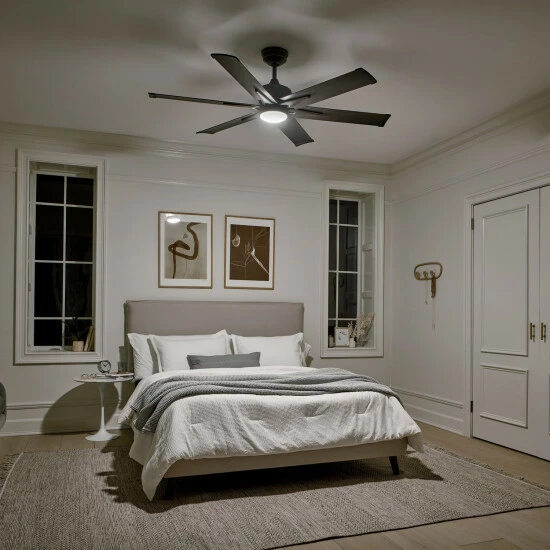 This 60-inch, 6 blade ceiling fan from the Szeplo Patio collection features an olde bronze finish that will subtly highlight the existing decor in your home. This attractive fan will complement many transitional decors. Inspired by industrial machinery, the Szeplo ceiling fan, for a look that matches your personal taste. The 6 blades are pitched 13 degrees and come with a matching olde bronze finish. The DC165M Motor will provide the quiet power you need. This fan comes complete with a 6 Speed DC Wall Control system. Dimensions: 16.25 inches high x 60 inch diameter. Turn on our fixtures, and watch your room transform even more. From lighting to ceiling fans Kichler collections are built around our simple philosophy of bringing you the effect you want for your home or business. Our collections coordinate from room-to-room, or let you mix and match from wall-to-ceiling. And each fixture is designed to deliver a stunning quality of light that makes your space more beautiful and more livable. As one of the largest, privately held residential lighting fixture companies in North America, we’re constantly working to create innovative and on-trend decorative products as well as knowledgeable support. Since 1938, we’ve been creating products that are not only well designed, but also practical. We invest millions of dollars each year in design, technology and testing to assure that we’re offering distributors, designers, installers and homeowners not only innovative technologies – but also fixtures that perform efficiently, install intuitively and deliver a premium source of light. This philosophy holds true for everything we create – from our wide variety of decorative fixtures to our award-winning landscape lighting to our ceiling fans.