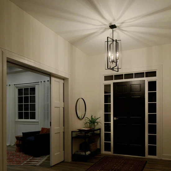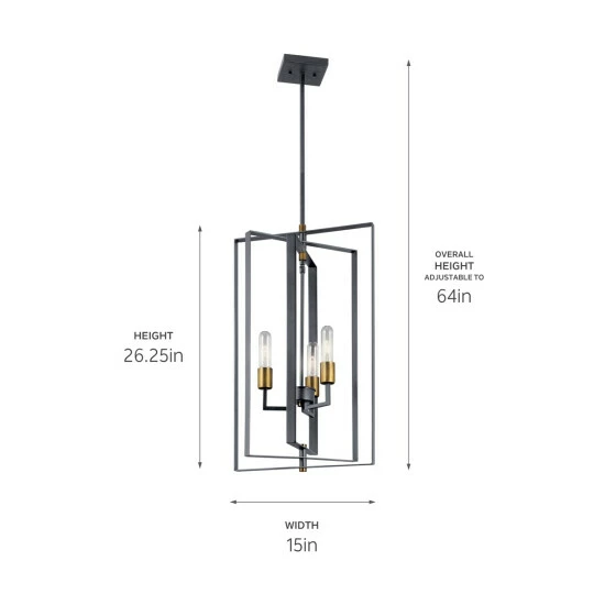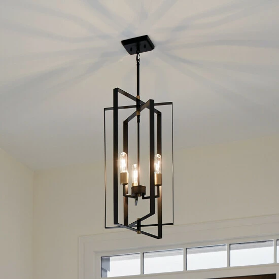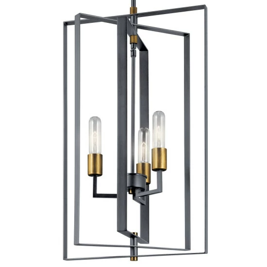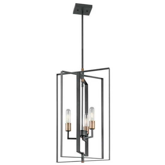 This Taubert collection 3-light foyer pendant features a black finish that will complement many transitional decors. The overlapping open frame steel boxes add interest while the exposed bulbs provide ample light to complete this truly unique design. Layered boxes create a design that’s clean and industrial-inspired on this Taubert pendant, and the two-tone finish is a nod towards mid-century modern fashions. Adjust the pendant height to suit your home’s style. This piece includes 36 inches of stems and 58 inches of wire so it can be hung at your desired height (Up to 64 inches). Dimensions: 26.25 inches high x 15 inch diameter. Turn on our fixtures, and watch your room transform even more. From lighting to ceiling fans Kichler collections are built around our simple philosophy of bringing you the effect you want for your home or business. Our collections coordinate from room-to-room, or let you mix and match from wall-to-ceiling. And each fixture is designed to deliver a stunning quality of light that makes your space more beautiful and more livable. As one of the largest, privately held residential lighting fixture companies in North America, we’re constantly working to create innovative and on-trend decorative products as well as knowledgeable support. Since 1938, we’ve been creating products that are not only well designed, but also practical. We invest millions of dollars each year in design, technology and testing to assure that we’re offering distributors, designers, installers and homeowners not only innovative technologies – but also fixtures that perform efficiently, install intuitively and deliver a premium source of light. This philosophy holds true for everything we create – from our wide variety of decorative fixtures to our award-winning landscape lighting to our ceiling fans.