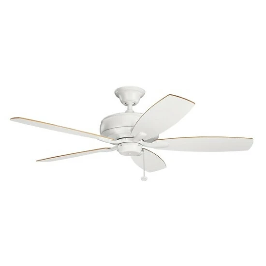 - The 5 blades are pitched 14 degrees and are reversible with your choice of a Matte White or Weathered White Walnut finish.