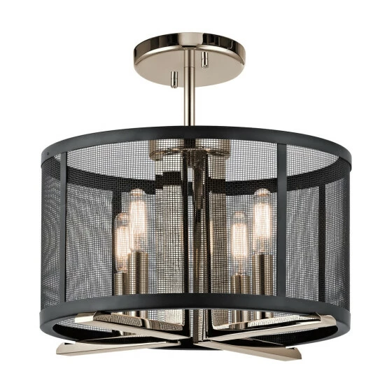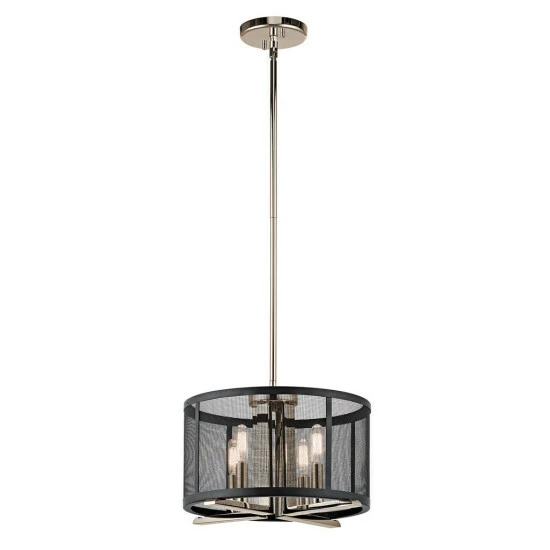 This Titus collection 1-light convertible pendant/semi flush mount features a polished nickel finish that will complement many contemporary and modern decors. The black mesh ironwork surrounding the bulb cluster will give the light a unique look for any space. Titus pendant/semi flush features black mesh ironwork, giving off an industrial accent to a modernly sleek collection. The pendant/semi flush has a polished nickel finish for a dynamic effect. This piece comes with all necessary hardware to convert to a semi flush mount. This piece includes 36 inches of stems and 73 inches of wire so it can be hung at your desired height (Up to 48 inches). Dimensions: 9.75 inches high x 14.25 inch diameter. Turn on our fixtures, and watch your room transform even more. From lighting to ceiling fans Kichler collections are built around our simple philosophy of bringing you the effect you want for your home or business. Our collections coordinate from room-to-room, or let you mix and match from wall-to-ceiling. And each fixture is designed to deliver a stunning quality of light that makes your space more beautiful and more livable. As one of the largest, privately held residential lighting fixture companies in North America, we’re constantly working to create innovative and on-trend decorative products as well as knowledgeable support. Since 1938, we’ve been creating products that are not only well designed, but also practical. We invest millions of dollars each year in design, technology and testing to assure that we’re offering distributors, designers, installers and homeowners not only innovative technologies – but also fixtures that perform efficiently, install intuitively and deliver a premium source of light. This philosophy holds true for everything we create – from our wide variety of decorative fixtures to our award-winning landscape lighting to our ceiling fans.