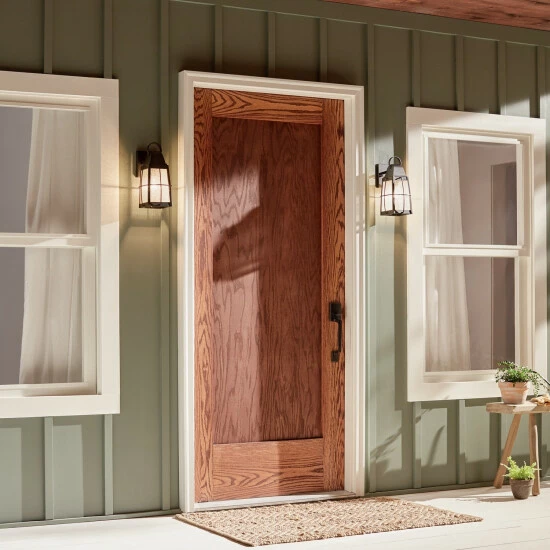 Light your front door with a vintage style using the Tolerand wall lantern from Kichler Lighting. Made of black-finished aluminum, this wall lantern features seedy glass panels that slightly dim light while allowing plenty through. A handle on top gives this fixture a truly lantern-like look.