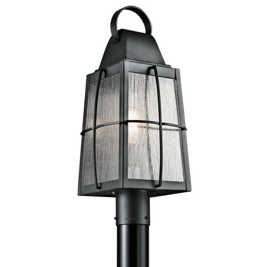 This Tolerand collection 1-light outdoor post lantern features a textured black finish that will complement many traditional decors. The clean lines of the aluminum frame adds interest while clear seedy glass panels will provide a warm welcoming glow. Capture the classic appeal of a gas lantern with this 1 light outdoor post mount from the Tolerand(TM) collection. Simple lines create the traditional style while incorporating special details such as curved cage accents and clear seedy glass. The perfect addition to the outside of your home. Post is not included. Dimensions: 21.75 inches high x 9.5 inch diameter. Turn on our fixtures, and watch your room transform even more. From lighting to ceiling fans Kichler collections are built around our simple philosophy of bringing you the effect you want for your home or business. Our collections coordinate from room-to-room, or let you mix and match from wall-to-ceiling. And each fixture is designed to deliver a stunning quality of light that makes your space more beautiful and more livable. As one of the largest, privately held residential lighting fixture companies in North America, we’re constantly working to create innovative and on-trend decorative products as well as knowledgeable support. Since 1938, we’ve been creating products that are not only well designed, but also practical. We invest millions of dollars each year in design, technology and testing to assure that we’re offering distributors, designers, installers and homeowners not only innovative technologies – but also fixtures that perform efficiently, install intuitively and deliver a premium source of light. This philosophy holds true for everything we create – from our wide variety of decorative fixtures to our award-winning landscape lighting to our ceiling fans.