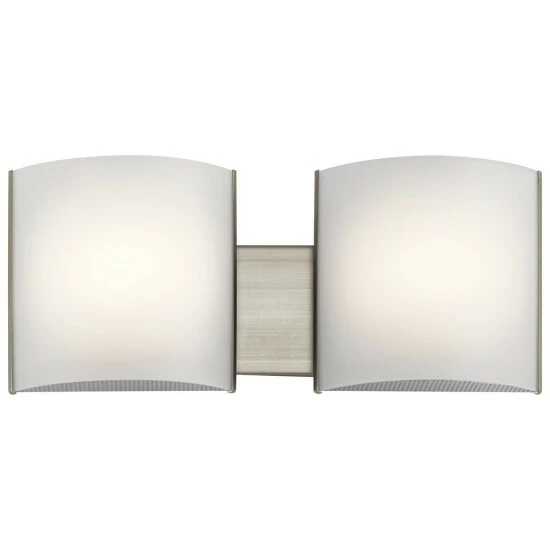 This 2-light LED bath/vanity light features a brushed nickel finish that will complement many transitional decors. The clean lines of the steel frame add interest while white acrylic diffusers soften the light to create an inviting atmosphere. Dimensions: 6 inches high x 19.25 inches wide x 3.5 inches deep. Turn on our fixtures, and watch your room transform even more. From lighting to ceiling fans Kichler collections are built around our simple philosophy of bringing you the effect you want for your home or business. Our collections coordinate from room-to-room, or let you mix and match from wall-to-ceiling. And each fixture is designed to deliver a stunning quality of light that makes your space more beautiful and more livable. As one of the largest, privately held residential lighting fixture companies in North America, we’re constantly working to create innovative and on-trend decorative products as well as knowledgeable support. Since 1938, we’ve been creating products that are not only well designed, but also practical. We invest millions of dollars each year in design, technology and testing to assure that we’re offering distributors, designers, installers and homeowners not only innovative technologies – but also fixtures that perform efficiently, install intuitively and deliver a premium source of light. This philosophy holds true for everything we create – from our wide variety of decorative fixtures to our award-winning landscape lighting to our ceiling fans.
