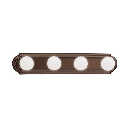 This 4-light, 24-inch linear bath bar features a tannery bronze finish that will complement many transitional decors. The clean lines of the steel frame add interest while exposed bulbs provide ample lighting for any space. Dimensions: 4.75 inches high x 24 inches wide x 6 inches deep. Turn on our fixtures, and watch your room transform even more. From lighting to ceiling fans Kichler collections are built around our simple philosophy of bringing you the effect you want for your home or business. Our collections coordinate from room-to-room, or let you mix and match from wall-to-ceiling. And each fixture is designed to deliver a stunning quality of light that makes your space more beautiful and more livable. As one of the largest, privately held residential lighting fixture companies in North America, we’re constantly working to create innovative and on-trend decorative products as well as knowledgeable support. Since 1938, we’ve been creating products that are not only well designed, but also practical. We invest millions of dollars each year in design, technology and testing to assure that we’re offering distributors, designers, installers and homeowners not only innovative technologies – but also fixtures that perform efficiently, install intuitively and deliver a premium source of light. This philosophy holds true for everything we create – from our wide variety of decorative fixtures to our award-winning landscape lighting to our ceiling fans.