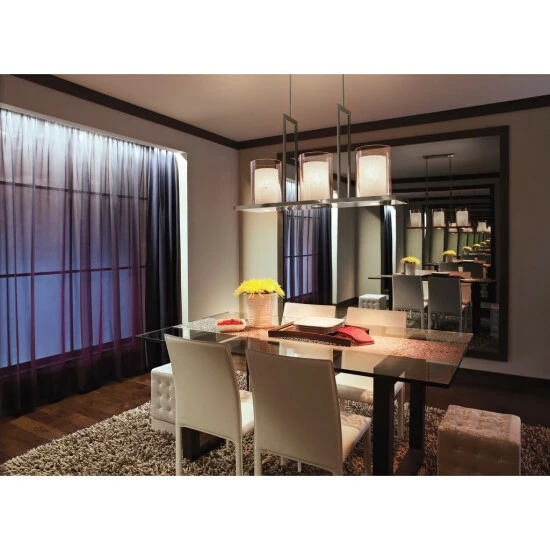 This Triad collection 3-light linear chandelier features a classic pewter finish that will complement many contemporary and modern decors. The clear glass adds interest and surrounds the frosted glass shade which softens the light to create a warm ambiance. This piece includes 36 inches of chain and 87 inches of wire so it can be hung at your desired height. Dimensions: Up to 61 inches high x 11.5 inches wide x 40 inches deep. Turn on our fixtures, and watch your room transform even more. From lighting to ceiling fans Kichler collections are built around our simple philosophy of bringing you the effect you want for your home or business. Our collections coordinate from room-to-room, or let you mix and match from wall-to-ceiling. And each fixture is designed to deliver a stunning quality of light that makes your space more beautiful and more livable. As one of the largest, privately held residential lighting fixture companies in North America, we’re constantly working to create innovative and on-trend decorative products as well as knowledgeable support. Since 1938, we’ve been creating products that are not only well designed, but also practical. We invest millions of dollars each year in design, technology and testing to assure that we’re offering distributors, designers, installers and homeowners not only innovative technologies – but also fixtures that perform efficiently, install intuitively and deliver a premium source of light. This philosophy holds true for everything we create – from our wide variety of decorative fixtures to our award-winning landscape lighting to our ceiling fans.