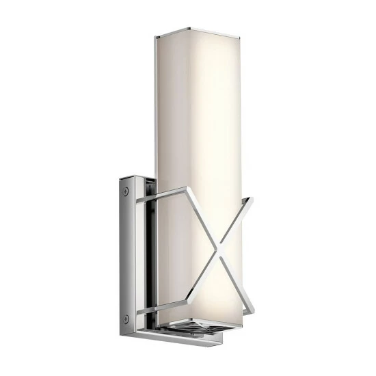 This Trinsic collection LED wall sconce features a chrome finish that will complement many contemporary and modern decors. The satin etched white glass shade is held in place by a unique criss cross design and will add a warm ambiance to any space. Dimensions: 12 inches high x 4.5 inches wide x 3.5 inches deep. Turn on our fixtures, and watch your room transform even more. From lighting to ceiling fans Kichler collections are built around our simple philosophy of bringing you the effect you want for your home or business. Our collections coordinate from room-to-room, or let you mix and match from wall-to-ceiling. And each fixture is designed to deliver a stunning quality of light that makes your space more beautiful and more livable. As one of the largest, privately held residential lighting fixture companies in North America, we’re constantly working to create innovative and on-trend decorative products as well as knowledgeable support. Since 1938, we’ve been creating products that are not only well designed, but also practical. We invest millions of dollars each year in design, technology and testing to assure that we’re offering distributors, designers, installers and homeowners not only innovative technologies – but also fixtures that perform efficiently, install intuitively and deliver a premium source of light. This philosophy holds true for everything we create – from our wide variety of decorative fixtures to our award-winning landscape lighting to our ceiling fans.