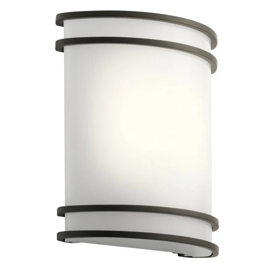 This 1-light LED wall sconce features an olde bronze finish that will complement many utilitarian and transitional decors. The white acrylic shade softens the light to creating a warm ambiance for any space completing this simple yet functional design.