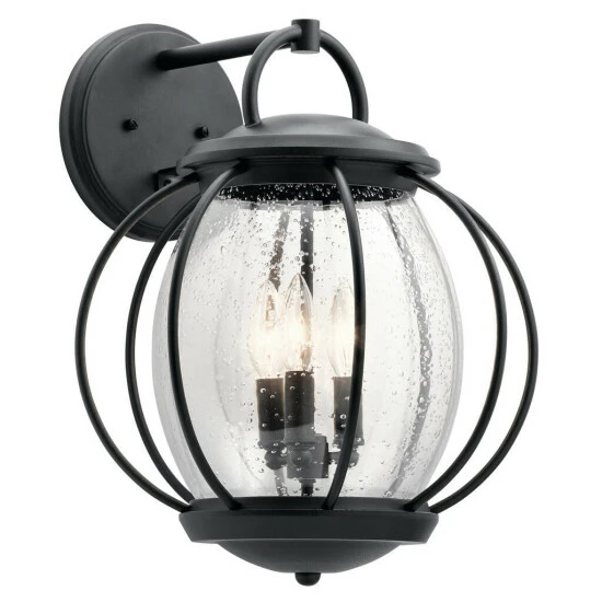 This Vandalia collection 3-light outdoor wall lantern features a textured black finish that will complement many transitional decors. The sphere shaped aluminum frame adds interest while clear seeded glass gives your outdoor decor a whole new look. On-trend orb styles step outdoors with the Vandalia collection’s globe design. Marrying carriage lantern details with a round silhouette, the result is an updated take on a traditional piece. Dimensions: 18 inches high x 14 inches wide x 15 inches deep. Turn on our fixtures, and watch your room transform even more. From lighting to ceiling fans Kichler collections are built around our simple philosophy of bringing you the effect you want for your home or business. Our collections coordinate from room-to-room, or let you mix and match from wall-to-ceiling. And each fixture is designed to deliver a stunning quality of light that makes your space more beautiful and more livable. As one of the largest, privately held residential lighting fixture companies in North America, we’re constantly working to create innovative and on-trend decorative products as well as knowledgeable support. Since 1938, we’ve been creating products that are not only well designed, but also practical. We invest millions of dollars each year in design, technology and testing to assure that we’re offering distributors, designers, installers and homeowners not only innovative technologies – but also fixtures that perform efficiently, install intuitively and deliver a premium source of light. This philosophy holds true for everything we create – from our wide variety of decorative fixtures to our award-winning landscape lighting to our ceiling fans.