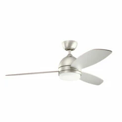 This 52-inch, 3 blade ceiling fan from the Vassar collection features a brushed nickel finish that will subtly highlight the existing decor in your home. This attractive fan will complement many transitional decors. A clean look and attractive lines adorn this 3 blade LED fan from Kichler. The 3 blades are pitched 14 degrees and are reversible with your choice of a walnut or silver finish. The 153MM X 17MM Motor will provide the quiet power you need. This fan comes complete with a 3 Speed Wall Control Limited Function System. Dimensions: 15 inches high x 52 inch diameter. Turn on our fixtures, and watch your room transform even more. From lighting to ceiling fans Kichler collections are built around our simple philosophy of bringing you the effect you want for your home or business. Our collections coordinate from room-to-room, or let you mix and match from wall-to-ceiling. And each fixture is designed to deliver a stunning quality of light that makes your space more beautiful and more livable. As one of the largest, privately held residential lighting fixture companies in North America, we’re constantly working to create innovative and on-trend decorative products as well as knowledgeable support. Since 1938, we’ve been creating products that are not only well designed, but also practical. We invest millions of dollars each year in design, technology and testing to assure that we’re offering distributors, designers, installers and homeowners not only innovative technologies – but also fixtures that perform efficiently, install intuitively and deliver a premium source of light. This philosophy holds true for everything we create – from our wide variety of decorative fixtures to our award-winning landscape lighting to our ceiling fans.