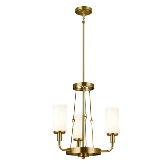 The Vetivene collection whispers nostalgia and redefines distinction. Its exquisite glass and timeless finishes bring your cozy vintage vibe to life. Inspired by vintage herbal drying racks, Vetivene 3 light chandelier’s decorative hooks make the old new again. Its Natural Brass finish elegantly complements its Opal Glass shades. It includes multiple stems to adjust its height and an extra set of candle sleeves, so you can display it without the shades.