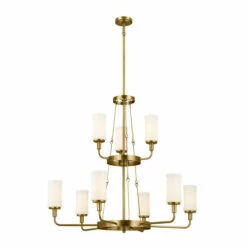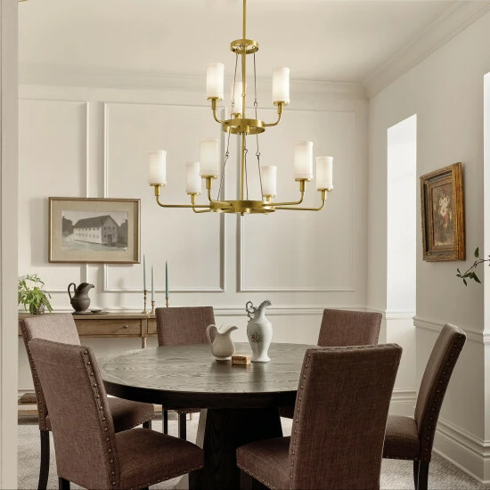 The Vetivene collection whispers nostalgia and redefines distinction. Its exquisite glass and timeless finishes bring your cozy vintage vibe to life. Inspired by vintage herbal drying racks, Vetivene 9 light chandelier’s decorative hooks make the old new again. Its Natural Brass finish elegantly complements its Opal Glass shades. It includes multiple stems to adjust its height and an extra set of candle sleeves, so you can display it without the shades.