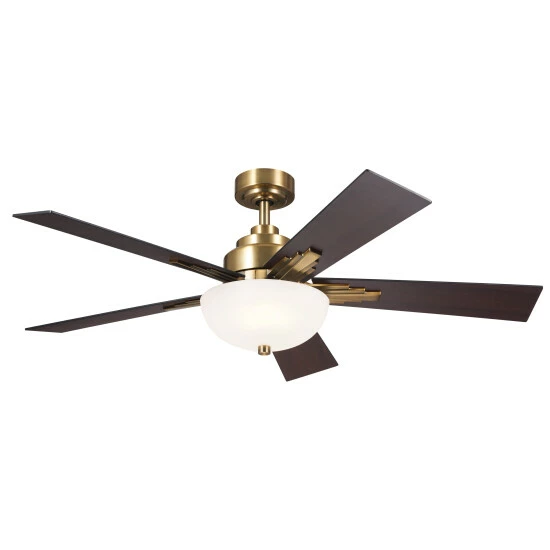 Geometry and symmetry come to life in the Vinea collection. A refined, sophisticated fan inspired by Art Deco’s familiar motifs, Vinea does more than elevate a space β it transforms it. Featuring the beloved stacked shapes iconic to Art Deco style, the Vinea ceiling fan gives you luxurious comfort in a refined retro style. Its glamorous brushed natural brass finish with its reversible black and walnut blades confirms its elegance. A gorgeous Etched Cased Opal glass diffuser encases its integrated LED light.