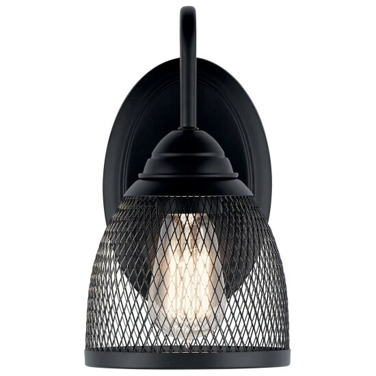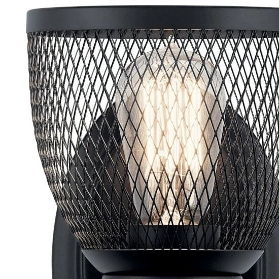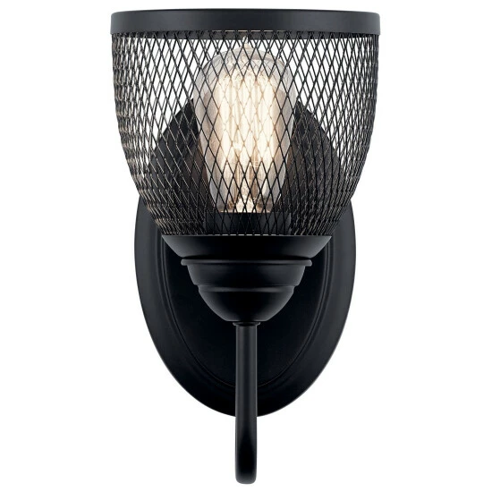The Voclain 10.5″ 1 light wall sconce features a distinctive industrial look with its Black metal mesh shade. A perfect addition in several aesthetic environments including industrial, contemporary and transitional. The Voclain 1 light wall sconce with Black metal mesh shade uses 75 watt (max.) bulb equivalent, measures 6″ in width with a body height of 10.5″.