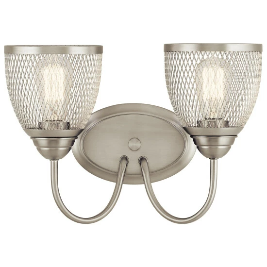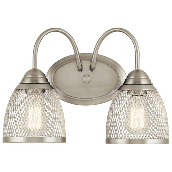 - 16″, two light vanity light with Brushed Nickel mesh shade.