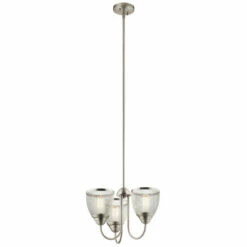 - 12.5″, three light convertible chandelier/semi flush with Brushed Nickel mesh shade.