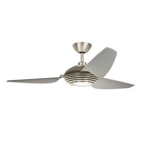 This 60-inch, 3 blade ceiling fan from the Voya collection features a brushed stainless steel finish that will subtly highlight the existing dcor in your home. This attractive fan will complement many contemporary and modern decors. This brushed stainless steel ceiling fan from the Voya collection combines smooth textures and materials in high-tech harmony. Influenced by modern airplane design, the look delivers a smooth breeze in fully aerodynamic fashion. The 3 blades are pitched 20 degrees and come with a clear champagne finish. The 188MM X 10MM Motor will provide the quiet power you need. This fan comes complete with a 6 Speed DC Wall Control System. Dimensions: 15 inches high x 60 inch diameter. Turn on our fixtures, and watch your room transform even more. From lighting to ceiling fans Kichler collections are built around our simple philosophy of bringing you the effect you want for your home or business. Our collections coordinate from room-to-room, or let you mix and match from wall-to-ceiling. And each fixture is designed to deliver a stunning quality of light that makes your space more beautiful and more livable. As one of the largest, privately held residential lighting fixture companies in North America, were constantly working to create innovative and on-trend decorative products as well as knowledgeable support. Since 1938, weve been creating products that are not only well designed, but also practical. We invest millions of dollars each year in design, technology and testing to assure that were offering distributors, designers, installers and homeowners not only innovative technologies but also fixtures that perform efficiently, install intuitively and deliver a premium source of light. This philosophy holds true for everything we create from our wide variety of decorative fixtures to our award-winning landscape lighting to our ceiling fans.