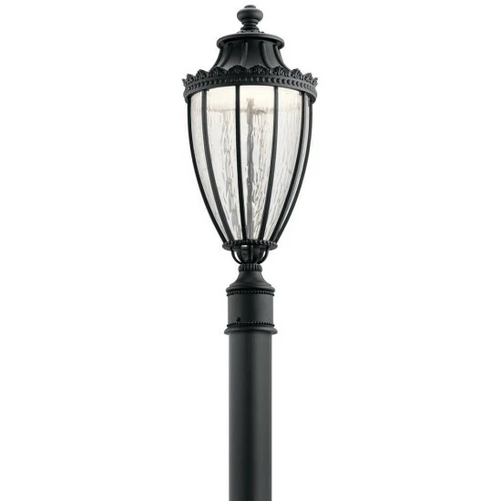 This Wakefield collection 1-light LED outdoor post mount features a textured black finish that will complement many traditional decors. Clean lines and a classic design adds interest while clear vertical rain glass panels provide a unique look to the light. This Wakefield LED post mount’s ornate fleur de lis details alludes to a regal and classic era. Yet it is engineered for modern-day performance with the latest in integrated LED technology for a highly efficient operation that casts a pleasing, warm glow. The clear rain glass enhances the vintage character. The 800 delivered Lumens is equivalent to around a 60 W Incandescent bulb. Post is not included. Dimensions: 25.5 inches high x 10.5 inch diameter. Turn on our fixtures, and watch your room transform even more. From lighting to ceiling fans Kichler collections are built around our simple philosophy of bringing you the effect you want for your home or business. Our collections coordinate from room-to-room, or let you mix and match from wall-to-ceiling. And each fixture is designed to deliver a stunning quality of light that makes your space more beautiful and more livable. As one of the largest, privately held residential lighting fixture companies in North America, we’re constantly working to create innovative and on-trend decorative products as well as knowledgeable support. Since 1938, we’ve been creating products that are not only well designed, but also practical. We invest millions of dollars each year in design, technology and testing to assure that we’re offering distributors, designers, installers and homeowners not only innovative technologies – but also fixtures that perform efficiently, install intuitively and deliver a premium source of light. This philosophy holds true for everything we create – from our wide variety of decorative fixtures to our award-winning landscape lighting to our ceiling fans.