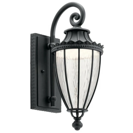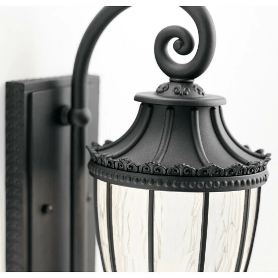 This Wakefield collection 1-light LED outdoor wall lantern features a textured black finish that will complement many traditional decors. Clean lines and a classic design adds interest while clear vertical rain glass panels provide a unique look to the light. This Wakefield LED wall lantern’s ornate fleur de lis details alludes to a regal and classic era. Yet it is engineered for modern-day performance with the latest in integrated LED technology for a highly efficient operation that casts a pleasing, warm glow. The clear rain glass enhances the vintage character. The 675 delivered Lumens is equivalent to around a 50 W Incandescent bulb. Dimensions: 17.75 inches high x 7 inches wide x 10 inches deep. Turn on our fixtures, and watch your room transform even more. From lighting to ceiling fans Kichler collections are built around our simple philosophy of bringing you the effect you want for your home or business. Our collections coordinate from room-to-room, or let you mix and match from wall-to-ceiling. And each fixture is designed to deliver a stunning quality of light that makes your space more beautiful and more livable. As one of the largest, privately held residential lighting fixture companies in North America, we’re constantly working to create innovative and on-trend decorative products as well as knowledgeable support. Since 1938, we’ve been creating products that are not only well designed, but also practical. We invest millions of dollars each year in design, technology and testing to assure that we’re offering distributors, designers, installers and homeowners not only innovative technologies – but also fixtures that perform efficiently, install intuitively and deliver a premium source of light. This philosophy holds true for everything we create – from our wide variety of decorative fixtures to our award-winning landscape lighting to our ceiling fans.