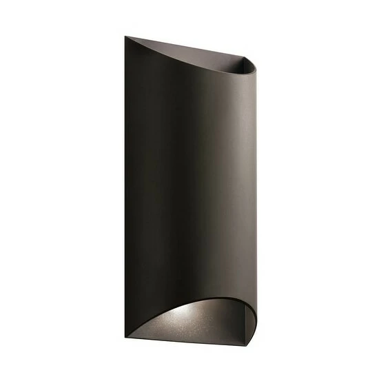 Echo the architectural lines of your home’s exterior with this Wesley Collection wall sconce by Kichler Lighting. This wall sconce contains two LED lights for energy efficiency and a generous glow, with a textured, half-moon-shaped shade bespeaking modern sensibilities. Etched glass lines the top and bottom of the shade, keeping the elements out.