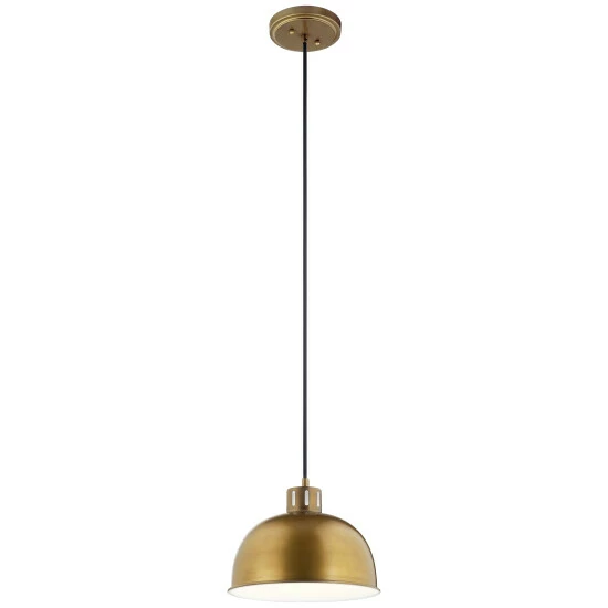 The Zailey 9″ 1 light pendant features a contemporary look with its Natural Brass dome shaped shade. A perfect addition to any aesthetic environments including industrial, contemporary and transitional. The Zailey 1 light pendant with Natural Brass dome shaped shade uses 100 watt (max.) bulb equivalent, measures 11.5″ in width with a body height of 9″.