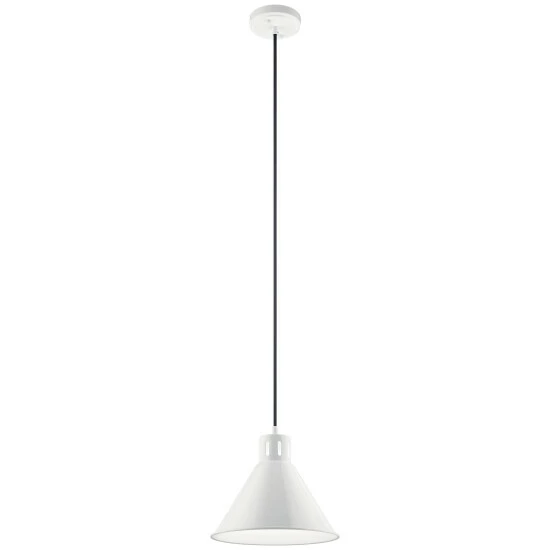 The Zailey 9.5″ 1 light pendant features a contemporary look with its White cone shaped shade. A perfect addition to any aesthetic environments including industrial, contemporary and transitional. The Zailey 1 light pendant with White cone shaped shade uses 100 watt (max.) bulb equivalent, measures 10.75″ in width with a body height of 9.5″.