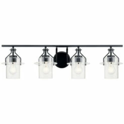 Best Sale π€© Kichler Lighting Everett 34.25 In. 4-Light Black Vanity Light With Clear Glass π